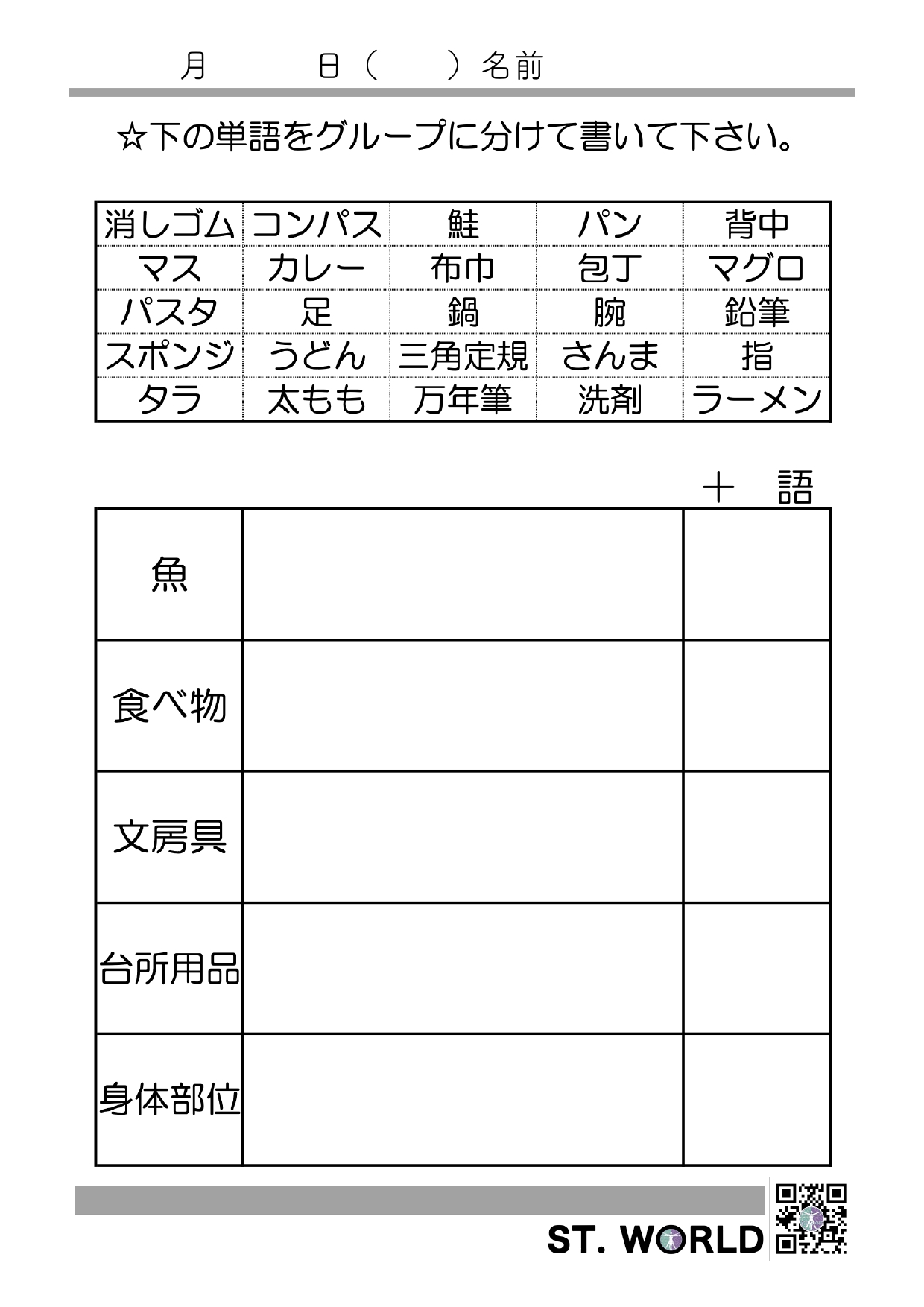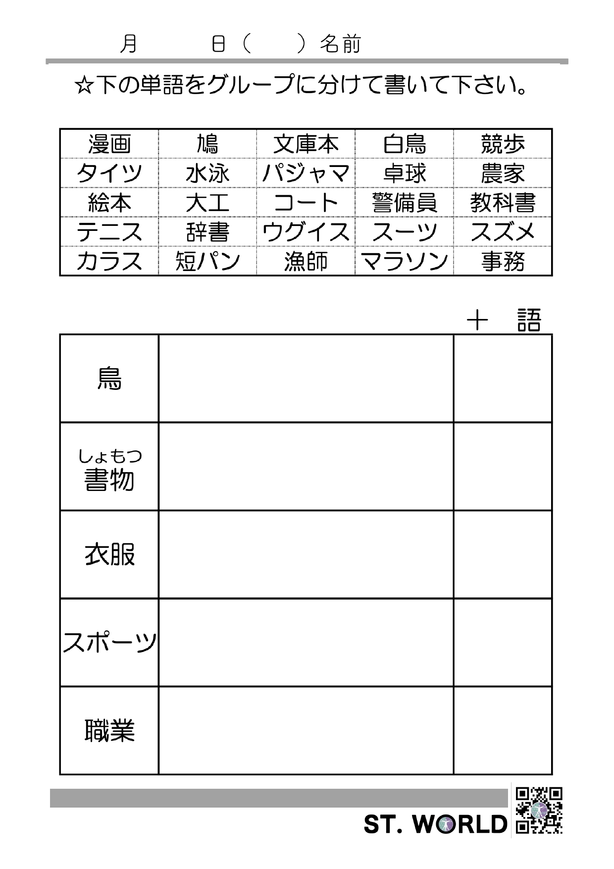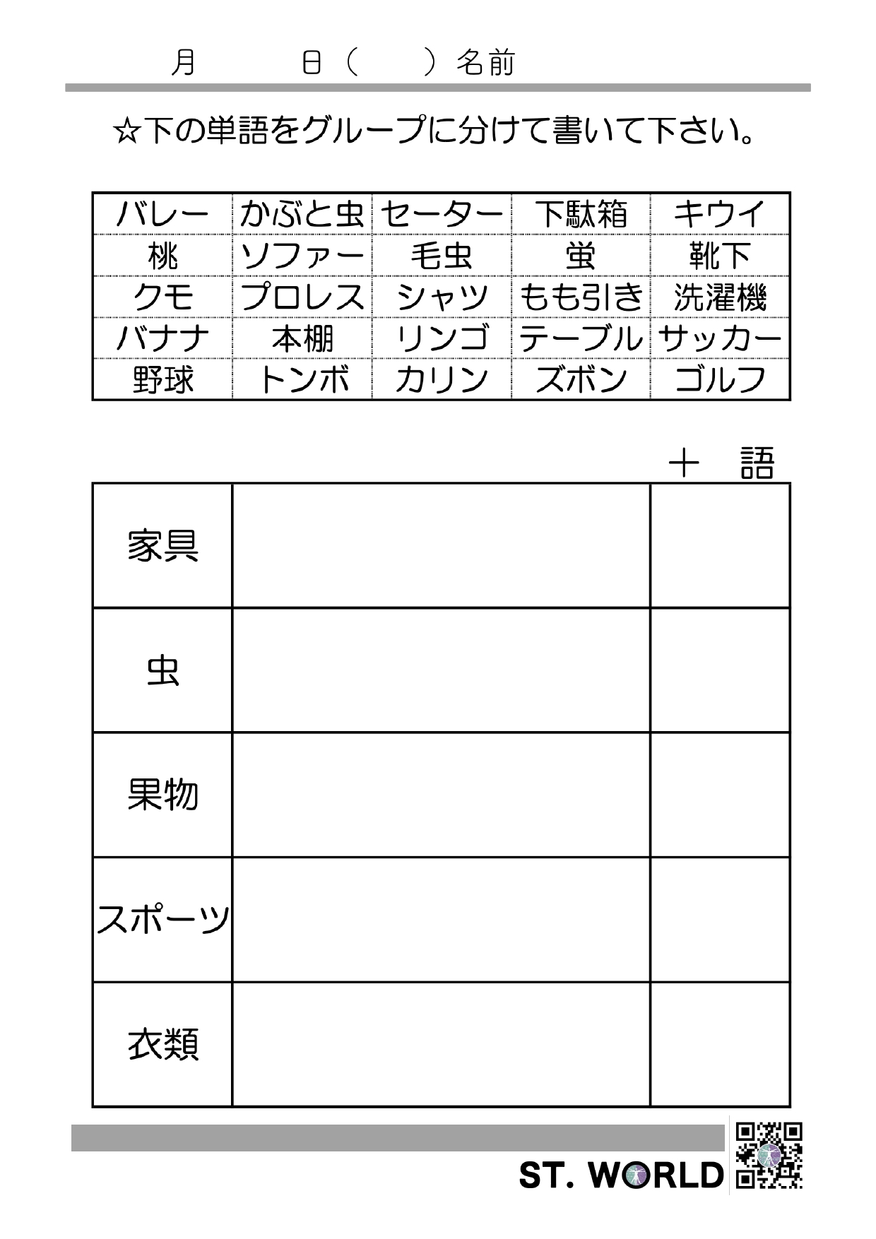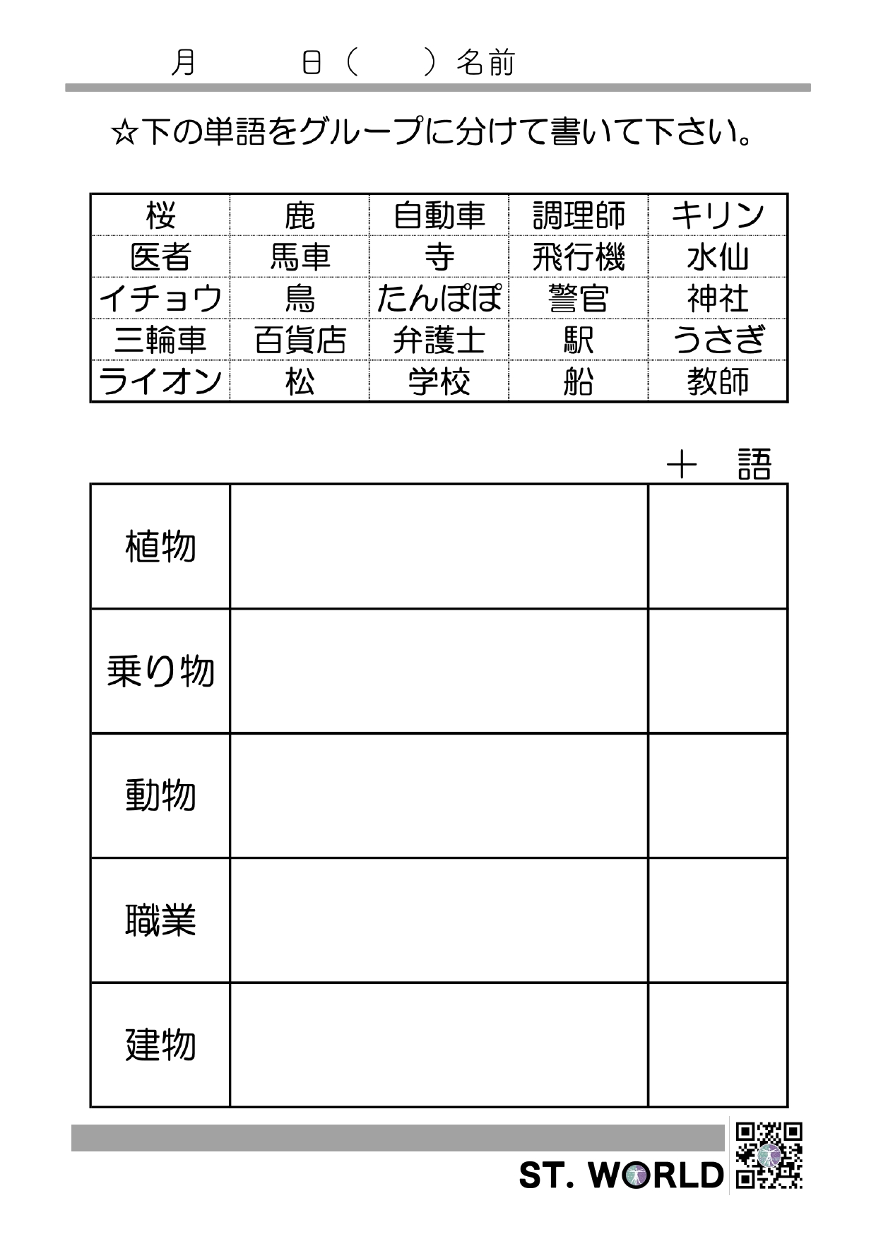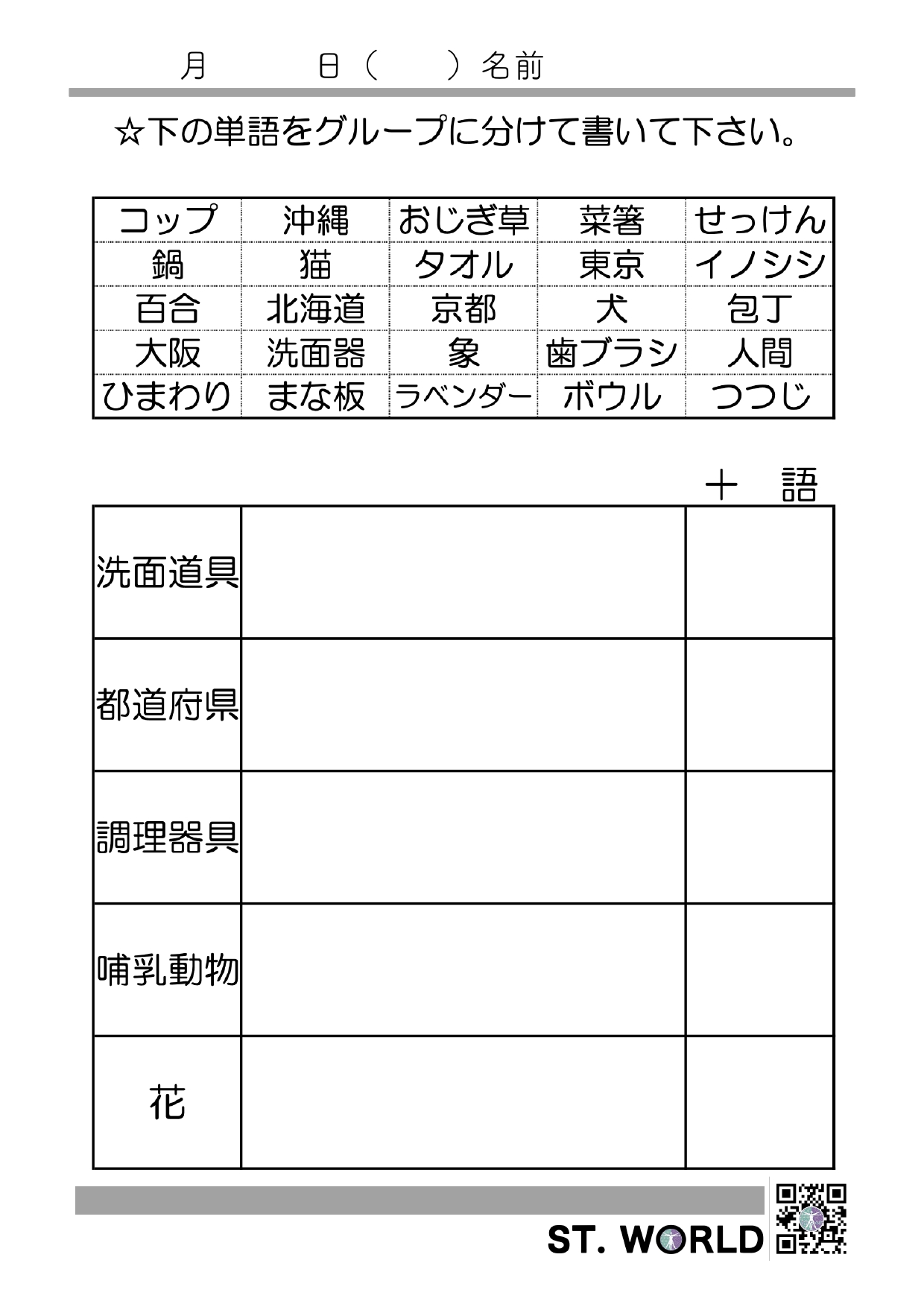 語と意味とをつなげるカテゴリー課題です。
