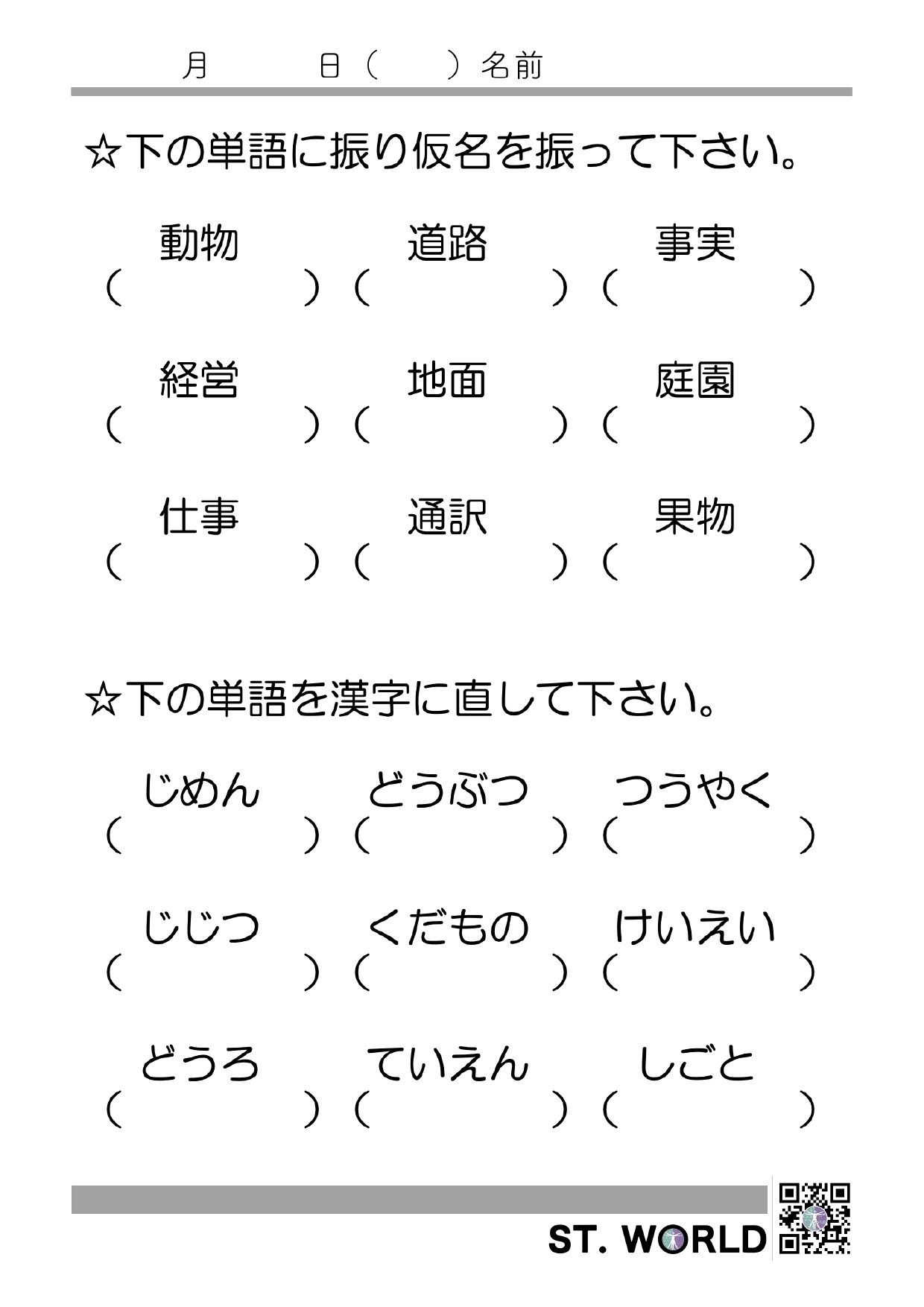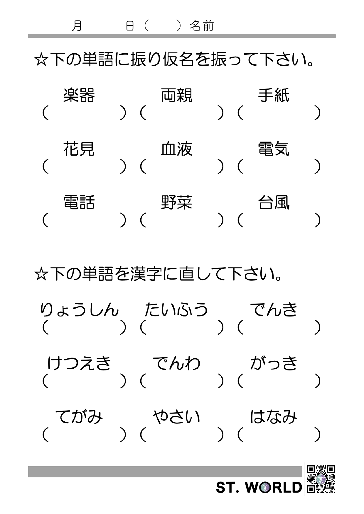 漢字-仮名書字課題1