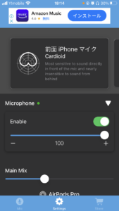 ⑤ 中央付近のMicrophoneの▶︎を押し、Enableを✅する